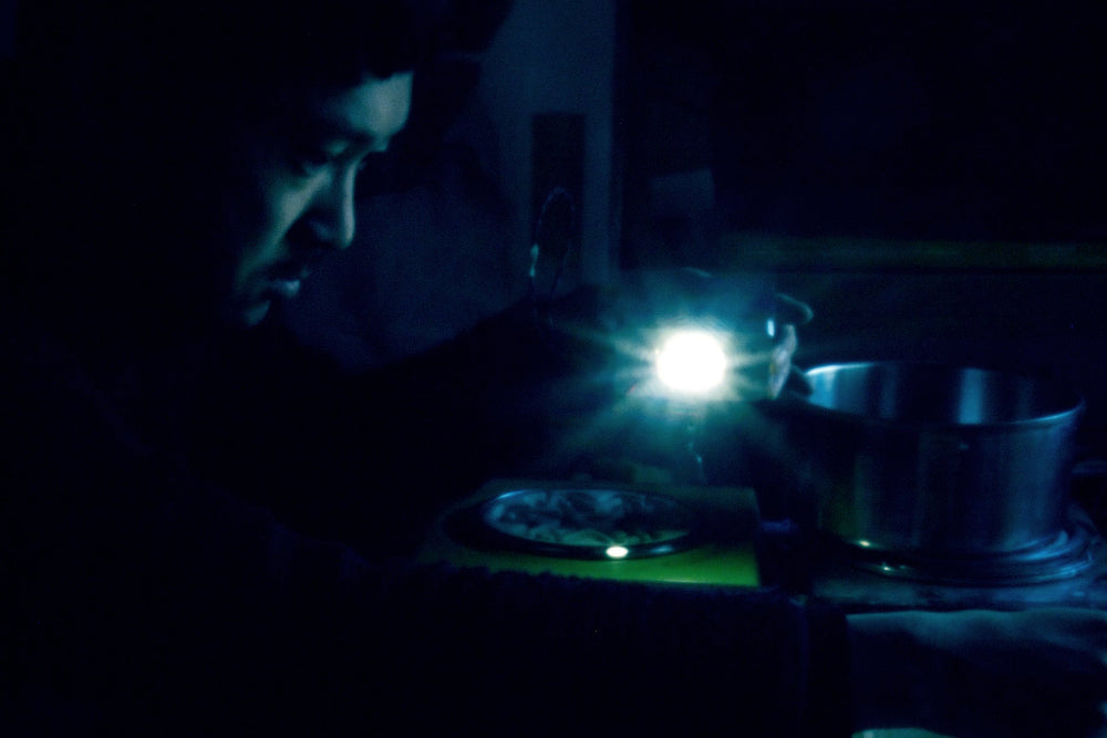 写真を表現媒体としながらカメラを使わず、写真材料である〈フィルム〉と〈印画紙〉の持つ、「光によって発色する」性質を利用し、完全な暗室のなかで、「光」を色彩として、形として、「記録」していく。